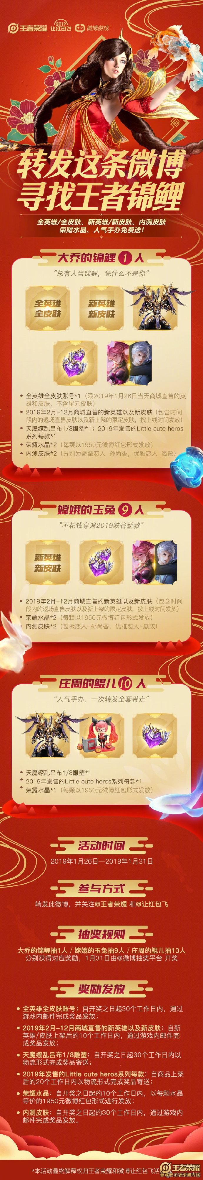 王者荣耀为大家带来的王者祝你新年快乐微博活动,只要转发微博就可以就会获得王者荣耀锦鲤的资格,获得王者荣耀的大礼。下面小编就为各位玩家带来了介绍。