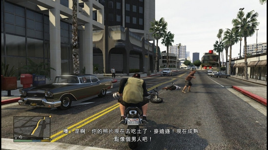 靠近麦迪逊的摩托车,然后就将左、右摇杆一同摁下,使用富兰克林的特殊能力——进入子弹时间,因此,比佛利就可以把麦迪逊及那名摩托车手推倒在地。