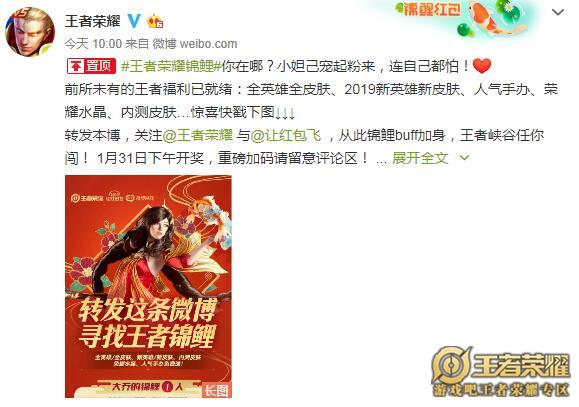 王者荣耀为大家带来的王者祝你新年快乐微博活动,只要转发微博就可以就会获得王者荣耀锦鲤的资格,获得王者荣耀的大礼。下面游戏吧小编就为各位玩家带来了介绍。